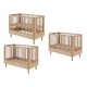 Skab et roligt og funktionelt børneværelse med Forrest Oak sættet i naturlig eg. Kombinationen består af en babyseng 60 × 120 cm og et puslebord, der tilsammen giver en tryg soveplads og praktisk opbevaring. Tremmesengen har lodrette tremmer på alle fire sider for overblik og sikkerhed, mens lamelbunden kan justeres i 3 højder, så den følger barnets udvikling.