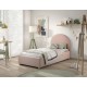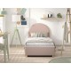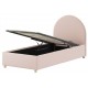 Moon er en polstret seng med opbevaring i størrelsen 90 x 200 cm, der kombinerer praktisk funktion med blød komfort. Den Rosa bouclé giver et varmt og hyggeligt udtryk, mens den afrundede gavl skaber en rolig ramme i børne- eller gæsteværelset. Under madrassen findes ekstra opbevaringsplads til sengetøj og tekstiler. Lamelbunden og madrassen løftes nemt ved hjælp af et bånd.
