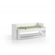 Sengen er fremstillet i spånplade med melamin-overflade for et rent, moderne udtryk. Konstruktionen er udtænkt som en pladsbesparende løsning, der gør det let at skifte mellem seng og bord i hverdagen. En lamelbund er inkluderet, så du kan tage sengen i brug med det samme.