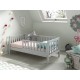 Sengen er fremstillet i massiv fyr med lakeret finish og leveres med lamelbund. Den enkle formgivning i grå gør det nemt at matche med sengetøj og dekorationer, så værelset kan tilpasses barnets personlighed. En god løsning til den lette overgang fra baby- til juniorseng.