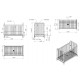Sengen er udstyret med stærke sidegitre og opfylder gældende sikkerhedsstandarder. Den leveres med lamelbund, så du blot skal tilføje en madras i størrelsen 60 × 120 cm. En enkel, tidløs løsning til forældre, der ønsker et industrielt design uden at gå på kompromis med funktion.