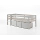 Sengen er fremstillet i skandinavisk fyr og MDF med lakeret finish og har inkluderet lamelbund. Den lave stige gør det let for barnet at komme op og ned, og sengens højde giver plads til opbevaringen under. En funktionel løsning til små og mellemstore rum, hvor design og hverdag går hånd i hånd. Minimumsalder: 4 år.