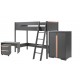 London sæt i antracit kombinerer halvhøj seng 90 × 200 cm med skrivebord, rulletrolley og 2-dørs garderobeskab. Den skandinaviske stil med detaljer i massivt fyr skaber et roligt, moderne udtryk, der passer perfekt i børneværelset. Pladsen under sengen forvandles nemt til lege- eller lektiehjørne med det rummelige skrivebord, mens trolleyen giver ekstra opbevaring lige ved hånden.