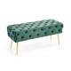 Oplev en perfekt kombination af elegance og komfort med ATHENA bænken i mørkegrøn og guld. Denne stilfulde bænk er designet til at tilføje et strejf af luksus til ethvert rum. Med sin velourbetræk og kromstålben kombinerer den både skønhed og holdbarhed. Ideel til stuer, soveværelser eller entréer, denne bænk tilbyder både funktion og æstetik. Målene på 100/45/40 cm gør den perfekt til alsidig brug, mens dens mørkegrønne betræk og gyldne ben tilføjer et sofistikeret look.