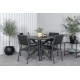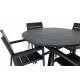 Delikate matchende Loungesæt - Havemøbelsætr til alle sommermåltider - passer lige så godt i udendørsområdet som på altanen! Levels er en praktisk stol i sort aluminium med sort sæde og ryg i Smaster Aintwood. Stolen er stabelbar, hvilket giver nem opbevaring. Her sammen med vores runde spisebord Alma i sort aluminium. Skab den perfekte sociale atmosfære på terrassen!