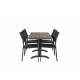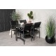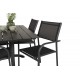 Denver Rektangulært Loungesæt - Havemøbelsæt er den perfekte løsning til små terrasser eller altaner. Dette smukke Loungesæt - Havemøbelsæt inkluderer et elegant spisebord fra Denver-serien og moderne stole fra Santorini-serien. Både bord og stole er lavet af holdbare materialer som aintwood, aluminium og tekstilene, som sikrer lang levetid og minimal vedligeholdelse. Sort farve giver et stilrent og moderne look, der passer til enhver udendørs indretning. Husk at beskytte dit møbel med et møbelovertræk, når det ikke er i brug, og opbevar det køligt og tørt om vinteren for at undgå misfarvning og snavs.