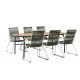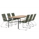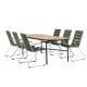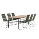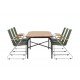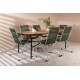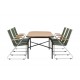Skab et farverigt sted i jordfarver på din terrasse! Det populære Holmbeck spisebord har en rektangulær bordplade i elegant akacietræ med afrundede kanter og en minimalistisk base i sort stål. Her sammen med grønne spisebordsstole fra Bois-serien. Denne stol har et komfortabelt zinkkonstruktion design, sæde i slank grøn reb og dekorative teakarmstøtter. Loungesæt - Havemøbelsætn er udendørsbestandig og passer lige så godt på terrassen som i udestuen! Bordmål: 200x90x75 cm. Samling kræves.