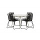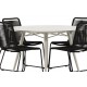 Det er et match – en moderne farvekombination, der skaber et modebevidst indtryk i udendørsområdet. Lina bordet har et minimalistisk design i hvid/beige stål, med en rektangulær bordplade og blødt afrundede kanter. Bordbenene er let udsvingede og giver et stabilt indtryk. Dimensioner: 200x90 cm. Her sammen med de trend-sikre spisebordsstole fra Lindos serien. Stolene har smalle ben i sort aluminium og et sæde i holdbart, sort reb. Indret indbydende på terrassen og skab et blikfang, der imponerer!