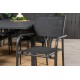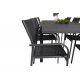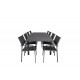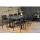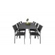 Marbella Rektangulære Loungesæt - Havemøbelsæt er ideelt for dem, der elsker at nyde udendørs spisning. Dette sæt kombinerer vores udtrækkelige Marbella spisebord med de moderne Santorini spisebordsstole, og skaber en elegant og funktionel løsning til din have eller terrasse. Lavet af letvægts aluminium og aintwood, er dette sæt designet til at modstå elementerne og give dig mange års nydelse. Sort farve giver et moderne look, der passer til enhver udendørs indretning.