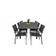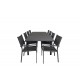 Marbella Loungesæt - Havemøbelsæt med Copacabana stole er den perfekte tilføjelse til enhver terrasse eller have. Bordet er udtrækkeligt, hvilket giver mulighed for større middagsselskaber! Dette elegante sæt i sort aluminium og textilene er både stilfuldt og holdbart. Skab uforglemmelige øjeblikke med venner og familie omkring dette smukke Loungesæt - Havemøbelsæt.