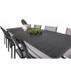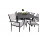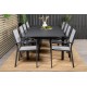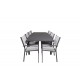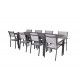 Marbella Loungesæt - Havemøbelsæt sammen med Copacabana spisestole giver dig en Loungesæt - Havemøbelsæt, der passer perfekt til enhver terrasse eller gårdhave. Bordet er udtrækkeligt og giver mulighed for større middagsselskaber! Med en robust konstruktion af aluminium og tekstilene, samt et stilfuldt design i sort og grå, er dette sæt både funktionelt og æstetisk tiltalende. Let at rengøre og vedligeholde, hvilket gør det ideelt til udendørs brug hele året rundt.