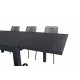 Klassisk madgruppe, der passer ind i de fleste husholdninger! Spisebordet Marbella sammen med stole i serien Lindos skaber en hyggelig og moderne atmosfære i udendørsområdet eller på terrassen. Bordet er udtrækkeligt, hvilket gør det ideelt til både små og store sammenkomster. Fremstillet af aluminium og polyester reb, dette sæt er både let og holdbart. Sort og grå farver giver et stilrent look.