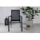 Parma er vores populære armstol i klassisk, industrielt design med lige nordiske former. Den gennemgående sorte farve skaber en luksuriøs følelse, og det holdbare materiale aluminium og textilene giver dig en stol, der holder over tid. Stolen har armlæn i grå Aintwood, hvilket giver en smagfuld detalje. Parma er også stabelbar, hvilket gør den nem at opbevare. Plejeråd: Textilene er et syntetisk stof lavet af PVC-behandlet polyester. Materialet er vandafvisende og UV-behandlet for at modvirke solens blegning. Rengøring bør ske ca. en gang om måneden; brug en fugtig klud og tør efter.