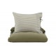 Red din seng pænt og indbydende med Jenna sengelinned i slank grøn farve! Dette praktiske og elegante dynebetræk tilbyder to alternative udseender, da den ene side har et stribet mønster i hvid og grøn, mens den anden er stilfuldt ensfarvet. Dynebetrækket og hovedpudebetrækket er forseglet med dekorative blonder for et mere romantisk look. Fremstillet af holdbar bomuld og hør, som er både luftigt og blødt mod kroppen. Mål: 150x200 cm.