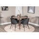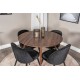 Stilfuldt træ kombineres med elegant sort fløjl! Vores runde spisebord Plaza i klassisk stil sammen med spisebordsstole Velvet i et moderne design! En tidløs Spisebordssæt for alle lejligheder. Plaza Rundt Spisebordssæt bringer luksus og komfort ind i dit hjem med materialer af høj kvalitet såsom bøjet træ, MDF og stål. Perfekt til både formelle middage og afslappede sammenkomster.