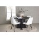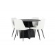 Lad dette Spisebordssæt bringe elegance, luksus og komfort ind i dit familieliv - ingen vil blive efterladt på kanten! Vores runde spisebord, Bootcut, har en velkendt følelse og kommer i en ensartet sort farve, fremstillet af MDF med finer. Den designrige base fungerer som en stilfuld kontrast til den tynde bordplade og vil imponere både familie og venner. Bordet måler 110 cm. Når det kommer til komfort og stil, er vores sorte stole fra Night serien det perfekte valg til at komplementere det runde spisebord. Med et hvidt PU-betrukket sæde vil du opleve en følelse af luksus og elegance, der får dig til at føle dig som en hædersgæst ved hvert måltid. De sorte stålben på stolen tilføjer et moderne touch, der passer perfekt ind i den slanke atmosfære. Nyd dyrebare øjeblikke sammen med dine kære omkring dette fantastiske Spisebordssæt. Med Bootcut og Night serien får du den perfekte kombination af stil, komfort og kvalitet!
