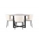 Dekorer dit hjem med luksus og charme med et uimodståeligt Spisebordssæt, der kombinerer stil og komfort på en helt unik måde! Vores runde spisebord Durango har et tidløst design med en træfarvet MDF bordplade og lige ben, der samles i et kryds nær gulvet. Uanset om du er vært for familiemiddage eller festlige begivenheder, vil Durango være det perfekte sted at samle dine kære. Bordets diameter er 120 cm. For at komplementere spisebordet er det matchet med de stilfulde spisebordsstole Edina. Stolens minimalistiske ben i sort metal tilføjer et sofistikeret touch til helhedsindtrykket. Sædet er fuldt polstret i hvid boucle stof, som både giver komfort og en elegant finish. Det responsive design giver dig en behagelig stol, hvor du kan sidde og nyde lange måltider eller engagerede samtaler. Med Durango bordet og Edina stolene hæver du ikke blot stilniveauet i dit hjem, men du skaber også et behageligt midtpunkt i hjemmets hjerte. Lad samtaler og latter flyde frit her, hvor ingen risikerer at ende på kanten!