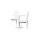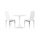 En fantastisk blikfang i det mindre køkken! Det runde spisebord Hamden har en tynd bordplade i hvid MDF og en stilfuld trompetfod i hvid stål. Her sammen med de elegante, hvide spiseborde fra Pastill-serien. Stolen har en høj ryg og fuldt polstret sæde i hvid kunstlæder, der er polstret for ekstra komfort. Stolebenene er lige i sølvmetal. En utrolig kombination i stilfuldt design! Borddiameter: 60 cm.
