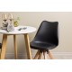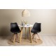 Hvilken perfekt kombination af stil og design! Det runde spisebord Leonora har en rund top i hvidt MDF og en trebenet ramme i en dejlig egetræslook. Her i en stilfuld kombination med bæredygtige spisebordsstole fra Zeno-serien. Stolen har et indbydende design med ryglæn og sæde i sort plastik, indbygget sædepude med høj komfort og fire udstillede ben i træ. Indret dit hjem smart og holdbart! Bordets diameter: 65 cm.