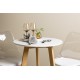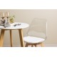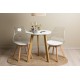 Skab en modebevidst følelse i dit hjem! Det runde spisebord Leonora har en rund top i hvid MDF og et trebenet stel i en dejlig egetræslook. Her sammen med smarte og trendy spisestole fra Edvin-serien. Det transparente sæde er i PET med en hvid sædehynde for ekstra komfort, og stolens ben er let udadgående i naturligt træ. Denne kombination udstråler virkelig trendiness! Bordets diameter: 65 cm.