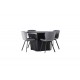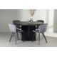 Skab en smart og elegant atmosfære i dit hjem med et udtrækkeligt Spisebordssæt i sort farve! Med det runde spisebord Matilda får du ikke kun en smuk indretningsdetalje, men også en praktisk løsning til at rumme flere gæster. Bordpladen er lavet af sort MDF med finer, og den robuste base består af to blokformede ben, der giver god stabilitet til bordet. Den udtrækkelige bordplade omdanner hurtigt bordet til en oval form, så du undgår bekymringer om, hvorvidt alle kan være der. Bordet måler 130 cm i diameter. For at skabe et komplet Spisebordssæt har vi parret spisebordet med de elegante stole fra Lilja-serien. Med deres smidige, afrundede form og grå polyesterstofsæder tilbyder Lilja en komfortabel og stilfuld siddeplads. De let spredte sorte metalben på stolene tilføjer et moderne og elegant touch til det samlede indtryk. Giv hjertet af dit hjem et personligt præg og nyd fleksibilitet, stil og komfort med Matilda spisebordet og Lilja stolene!