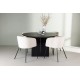 Et rundt Spisebordssæt i skandinavisk stil, der imponerer med sit gennemtænkte design, høje komfort og smarte funktioner! Vores udvidelige spisebord Matilda har en rund bordplade lavet af sort fineret MDF, hvilket tilføjer et luksuriøst touch til dit rum. Dets robuste ramme er konstrueret med to blokformede ben, som ikke kun giver stabilitet og støtte, men også et moderne æstetisk udtryk. Det bedste er, at Matilda kan forvandles til et længere, ovalt spisebord på ingen tid, når flere gæster ankommer. Du behøver aldrig bekymre dig om ikke at have nok plads! Bordets diameter måler 130 cm. Kombineret med vores beige spisestole fra vores eksklusive Berit-serie bliver Spisebordssættet endnu mere iøjnefaldende. Berit er en fuldt polstret spisebordsstol med en blidt afrundet ryg for maksimal komfort. Sædet er lavet af beige fløjlstof og polyesterlinned, mens de slanke sorte jernben tilføjer et minimalistisk touch. Giv dit hjem en opgradering med dette Spisebordssæt bestående af Matilda-bordet og stolene fra Berit-serien! Skab en unik atmosfære, der ikke kun er elegant og funktionel, men også afspejler din personlige stil og smag.