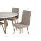 Klassisk Spisebordssæt, der passer ind i de fleste hjem! En flot kombination af spisebord fra Palace-serien og spiseborde fra Windu-serien. Hvid MDF-bordplade med naturfarvede detaljer og lysegrå stole med komfortable sæder. Dette elegante sæt er ideelt til enhver spisestue og tilbyder både stil og funktionalitet. Perfekt til daglig brug og nem at vedligeholde med korrekt pleje. Husk, at samling er påkrævet.