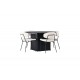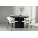Her kombinerer vi stil og komfort på den bedst mulige måde! Dette skandinaviske spisebordssæt med bløde former og bæredygtige materialer skaber hurtigt et imponerende fokuspunkt i dit hjem! Vores udtrækkelige spisebord Matilda er en drøm for dem, der elsker at invitere venner og familie til hyggelige middage. Med sin runde bordplade i sort MDF med finer udstråler Matilda elegance og klasse. Forestil dig en aften omgivet af dine kære ved dette smukke bord. Du kan nemt udvide bordet til en oval form, så alle kan nyde måltidet sammen. De to blokformede ben, der udgør stellet, er rillet i sort MDF og giver god stabilitet til bordet. Borddiameter: 130 cm. Og lad os ikke glemme vores hvide, moderne spisestole Chico - den perfekte kombination af slank minimalisme og vidunderlig komfort. Med deres slanke, sorte stålramme og den elegante bouclé-stof i beige farve er disse stole trendy og sofistikerede. Stolens sæder og ryglæn er omhyggeligt polstrede for at give ekstra komfort under lange middage og livlige samtaler. Giv din stue den opdatering, den fortjener med det sorte spisebord Matilda og de moderne stole Chico!