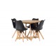 Et spisebordssæt der udstråler både funktionalitet og elegance takket være dets holdbare materialer og klassiske farvekombination! Vores runde spisebord Yakidon har en rund bordplade i egetræsfavet gummitræ og let udadvendte ben, der mødes under bordets midte og giver god stabilitet. Den lige nordiske design i kombination med runde former giver en smuk blikfang. I en vidunderlig kombination er bordet her matchet med spisebordsstole fra Zeno-serien. Disse stole har et indbydende design med ryg og sæde i sort plast og indbyggede sædehynder for stor komfort. Med deres stilfulde udseende passer de perfekt til spisebordet og skaber et behageligt centrum i dit hjem. Her behøver du ikke at gå på kompromis mellem et stilfuldt og smart spisebordssæt. Materialerne er holdbare, farverne er nemme at matche med resten af indretningen, og komforten garanterer dig lange middage fremover!
