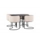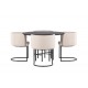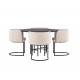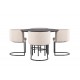 Det skal føles festligt at sætte sig ned til et lækkert måltid! Vores runde spisebord Copenhagen har en elegant, sort MDF bordplade og en dekorativ, cylinderformet base i sort metal. Her sammen med vores elegante spisebordsstole fra Simrishamn-serien. Stolen har et fuldt polstret sæde med en rundet ryglæn i beige TC stof og dekorative, minimalistiske ben i sort stål. Dette Spisebordssæt imponerer med sin luksuriøse karisma! Bordets dimensioner: 115 cm.