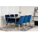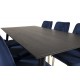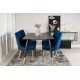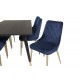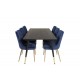 Dipp Rektangulær Spisebordssæt kombinerer elegance og luksus med funktionalitet. Dette Spisebordssæt består af et rektangulært spisebord og bløde stole fra serien Velvet, der matcher smukt med bordets understel og stolens ben. Spisebordet har en sort MDF bordplade, mens stolene fås i en stilfuld blå farve. Perfekt til at forvandle din spisestue til et sofistikeret rum.