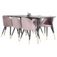 Lad dette smukt matchede Spisebordssæt med en moderne følelse blive et naturligt samlingspunkt i dit hjem. Spisestolene i fløjl har god komfort, og spisebordet Dipp sørger for, at du ikke behøver bekymre dig om, hvorvidt alle har plads.