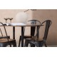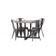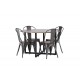En tidløs Spisebordssæt med bløde former. Vores runde Durango spisebord har en valnød-farvet bordplade i MDF og lige bordben i sort stål, der samles i et kryds på gulvet. Her præsenteres det i en stilfuld kombination med trendy stole fra Tempe-serien. Stolen har et klassisk design af en rustik stol med let udskårne ben i mørkegrå stål og et sæde i mørkt træ. Det er stilfuldt og luksuriøst! Bordets dimensioner: 120 cm.