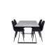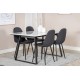 Spisebord Estelle i et slankt design sammen med Polar spisestole - den perfekte kombination for dem, der ønsker en trendy Spisebordssæt. Den høje siddekomfort af stolene inviterer til lange og vidunderlige øjeblikke med socialt samvær!