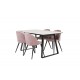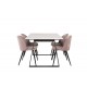 Spisebordssættet Estelle i et slankt design, kombineret med Velvet spisestole - den perfekte kombination til dem, der ønsker en trendy Spisebordssæt. Stolene har en høj siddekomfort, som inviterer til lange og vidunderlige øjeblikke af socialt samvær!