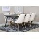 Køb af et forudsamlet spisebordssæt er både trendsikkert og praktisk! Her kombinerer vi vores udtrækkelige spisebord Guld med vores komfortable beige spisebordsstole Velvet. Lad hjemmets hjerte blive præget af din nye iøjnefaldende Spisebordssæt.