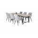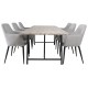 Jepara Rektangulær Spisebordssæt kombinerer forskellige farver og materialer på en måde, der skaber en moderne, hyggelig og tidløs atmosfære. Med vores spisebord Jepara og spisestole Comfort får du en perfekt kombination af stil og komfort, der passer ind i ethvert hjem. Bordpladen i teaktræ tilføjer et naturligt og elegant touch, mens de lette grå stole med polyesterfløjl sikrer optimal siddekomfort. Dette sæt er ideelt til familiesammenkomster og hyggelige middage.