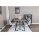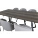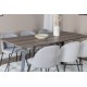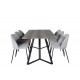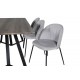 Vores moderne velourstole Wrinkles med en indbydende følelse er både komfortable og stilfulde. Her sammen med vores grå træbord Marina. Den høje siddekomfort på stolene indbyder til lange og vidunderlige stunder omkring spisebordet med dine kære.