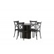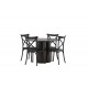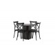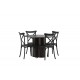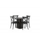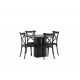 En spisestuegruppe, der kombinerer klassisk design og moderne former! Spisebordet Olivia imponerer med sit skandinaviske design og smagfulde udseende. Bordet kommer i en elegant mocca farve i MDF med en tynd, rund top og tre cylinderformede ben, der er samlet under midten af bordet. Her sammen med spiseborde fra Crosett-serien. Stolene har et nostalgisk design med krydset ryg og lige linjer, konsekvent lavet af sort plast. Her får du en stilfuld spisestuegruppe til at dekorere dit hjem med!