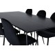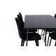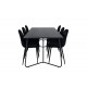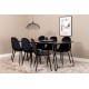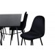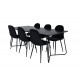 Oplev det delikate Petra Rektangulær Spisebordssæt i en elegant sort farve - stilfuldt, let og indbydende til alle måltider på dagen! Her kombineres spisebordet Petra med spisebordsstole fra Polar-serien. Bordet har et stilrent design med bordplade i sort MDF med finer og let udstillede bordben i jern. Bordmål: Længde: 190 cm, Bredde: 90 cm, Højde: 75 cm. De 6 spisebordsstole har smalle ben i metal og en blød, fuldt polstret sæde i velourstof. Stolens mål: Højde: 88 cm, sædehøjde: 41,5 cm, bredde: 42,5 cm, dybde: 53,3 cm. Lad dette smukt matchende Spisebordssæt med en moderne følelse blive et naturligt samlingssted i dit hjem.