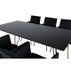 Petra rektangulær spisebordssæt passer perfekt og skaber en stilfuld atmosfære i din stue! Spisebordet Petra har et tidløst, skandinavisk design med en tynd bordplade i sort MDF med finer og bordben i kobberfarvet jern. Bordets dimensioner: Længde: 190 cm, Bredde: 90 cm, Højde: 75 cm. Sættet inkluderer 6 Petra spisebordsstole i elegant sort fløjlstof og kobberfarvede stoleben i jern. Stolens dimensioner: Højde: 87 cm, Sædehøjde: 48 cm, Bredde: 57 cm, Dybde: 60 cm. Synk ned i denne inviterende og stilfulde Spisebordssæt til lange middage med familie og venner!