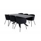 Berit spisestole skaber hurtigt en luksuriøs følelse i dit hjem med sin komfortable sædedybde og minimalistiske stoleben. Sædet er i sort fløjl og stolebenene i smalt jern. Stoledimensioner: Højde: 78 cm, sædehøjde: 49 cm, bredde: 55 cm, dybde: 55 cm. Disse 6 stole matches med Piazza, vores populære rektangulære spisebord med luksuriøs fornemmelse og trendy detaljer i designet. Bordpladen i grå farve er lavet af MDF. Kroppen har et lækkert udseende med krydsben i sort jern, der skaber en stabil blikfang. Borddimensioner: Længde: 190 cm, bredde: 90 cm, højde: 76 cm. Indret med guldkanter i hverdagen - det skal føles dejligt at komme hjem!