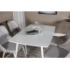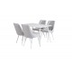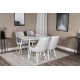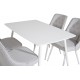 Vores enkle og klassiske spisebord Polar kombineret med vores luksuriøse spisebordsstole Velvet. Her får du en stilfuld kombination, der står tidens prøve. Inviter til middag og socialt samvær med dette elegante sæt. Bordet og stolene er fremstillet af holdbare materialer som MDF, krydsfiner og stål, hvilket sikrer langvarig brug. Fås i hvid og grå, hvilket passer perfekt til ethvert interiør.