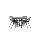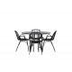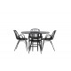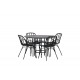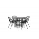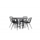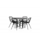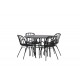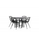 Komplet Spisebordssæt med alle de rigtige funktioner: komfortabelt, moderne og tidløst! København er et spisebord, der helt sikkert vil imponere dine gæster. Bordpladen er elegant i sort MDF, og basen er dekorativ, luftig og cylinderformet i sort metal. Her sammen med vores moderne spisestuestole fra Dyron serien. Stolen er lige så stilfuld som praktisk, lavet af sort plastik og stål. Sædet har integrerede armlæn og et ribbet design i den let afrundede ryg. En rund Spisebordssæt er perfekt, hvis du vil skabe en social og indbydende atmosfære i dit hjem!