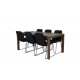 Dette Slider Rektangulær Spisebordssæt i stilfuld eg-look er perfekt til både små og store sammenkomster. Bordet har en udtrækningsmulighed, der gør det nemt at udvide pladsen efter behov. Kombineret med de moderne Muce spisebordsstole, skaber dette sæt en elegant og funktionel spiseplads. Spisebordssættet kommer i en smuk kombination af naturfarvet bord og sorte stole, der passer ind i enhver indretning.