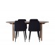 Et vidunderligt Spisebordssæt i skandinavisk stil, der kombinerer bæredygtige materialer med elegante farver, jordnære toner og høj komfort! Vores mørkebrune spisebord Andy er den perfekte kombination af minimalistisk stil og uimodståelig charme. Med en oval og tynd MDF-bordplade og fire cylinderformede ben får du et klassisk spisebord, der forbedrer det moderne design med sin jordnære tone. Bordets dimensioner: 180x75cm. Her har vi matchet det beige spisebord med de vidunderlige sorte stole fra Night-serien for at skabe et komplet og sammenhængende look. Med fuldt polstret sæder i sort velourstof og elegante sortfarvede stoleben tilbyder disse stole en uovertruffen kombination af komfort og stil. Giv dit hjem det elegante touch, det fortjener, med Andy Spisebordssæt og Night stole. Skab minder, nyd god mad, og oplev en følelse af konstant luksus i dit eget hjem!