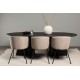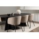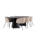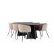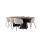 Det bliver ikke bedre end dette! Vores ovale spisebord Bootcut har et unikt design med en oval bordplade i sort MDF med finer og en karakteristisk ramme med to kegleformede ben i åben design. Her sammen med vores komfortable spisestole Berit. Stolen har et fuldt polstret design med en let afrundet ryg og sæde i fløjlsstof og polyesterlinned samt smalle stoleben i sort jern. Simpelthen en utrolig indbydende og luksuriøs Spisebordssæt! Bordmål: 230x115 cm.
