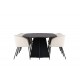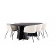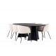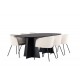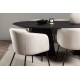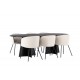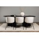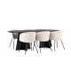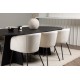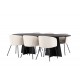 Tilføj glans til din indretning! Vores ovale spisebord Bootcut har et unikt design med en oval bordplade i sort MDF med finer og en karakteristisk ramme med to kegleformede ben i åben design. Her sammen med vores fornemme spisebordsstole Berit. Stolen har et fuldt polstret design med en let afrundet ryg og sæde i velourstof og smalle ben i sort jern. Den fløjlsagtige blikfang er prikken over i'et her! Bordmål: 230x115 cm.
