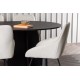 Elegant, moderne og storslået - dette luksuriøse Spisebordssæt i skandinavisk stil kombinerer alle vores yndlingsfunktioner! Vores Bootcut ovale spisebord i et storslået design bliver hurtigt et stilfuldt midtpunkt i hjemmet. Bordpladen er oval i sort MDF med finer, og de to formede ben har et robust design, der danner et solidt fundament. Bordets dimensioner: 115x230 cm. Her har vi parret det sorte bord med vores populære moderne spisestole fra Rosie-serien. Disse trendy spisestole kombinerer komfort og stil på en enestående måde. Det beige stofsæde, som er fuldt polstret og har integrerede armlæn, giver en følelse af luksus og komfort. De let udstående sorte metalben på stolen tilbyder ikke kun stabilitet men også et diskret touch af modernitet. Hvad mere kan man ønske sig? Dette Spisebordssæt smelter sammen i en dejlig harmoni og er let at matche med andre interiørdekorationer takket være dets tidløse farver!