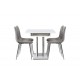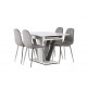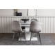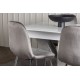 Dekorer dit hjem med behagelige farver, bløde materialer og tidløst design. Med dette udtrækkelige Spisebordssæt kan du nemt justere dine middagsinvitationer efter dine præferencer! Vores hvide spisebord Disa har en rektangulær bordplade i hvid MDF, en centerplaceret base i samme materiale og to grå MDF-rammer. En af de fantastiske fordele ved dette spisebord er dets udtrækkelige funktion, som gør det muligt at rumme både små og store forsamlinger. Bordets dimensioner: 120/160x80cm. Sammen med det udtrækkelige spisebord tilbyder vi vores lysegrå spisebordsstole fra Eva-serien. Disse stole har et fuldt polstret design med en let afrundet ryg og et sæde i luksuriøst velourstof. De smukke lysegrå metalben tilføjer et moderne touch til Spisebordssættet, hvilket gør det til et charmerende midtpunkt i dit hjem. Giv din stue den stil, den fortjener med dette Spisebordssæt!